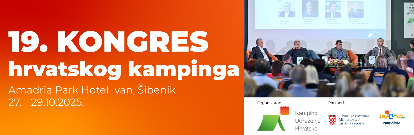 Legendarni kongres na kojem aktivno sudjelujemo kao izlagači i govornici od samih početaka. Ovo je najznačajniji godišnji skup kamping industrije na kojem možete čuti inspirativna predavanja stranih i domaćih stručnjaka iz kamping sektora kao i uvide u najnovije trendove, ponudu opreme i usluga kamping industrije. Ove godine održat će se u Šibeniku, od 27.10.2025. do 29.10.2025.